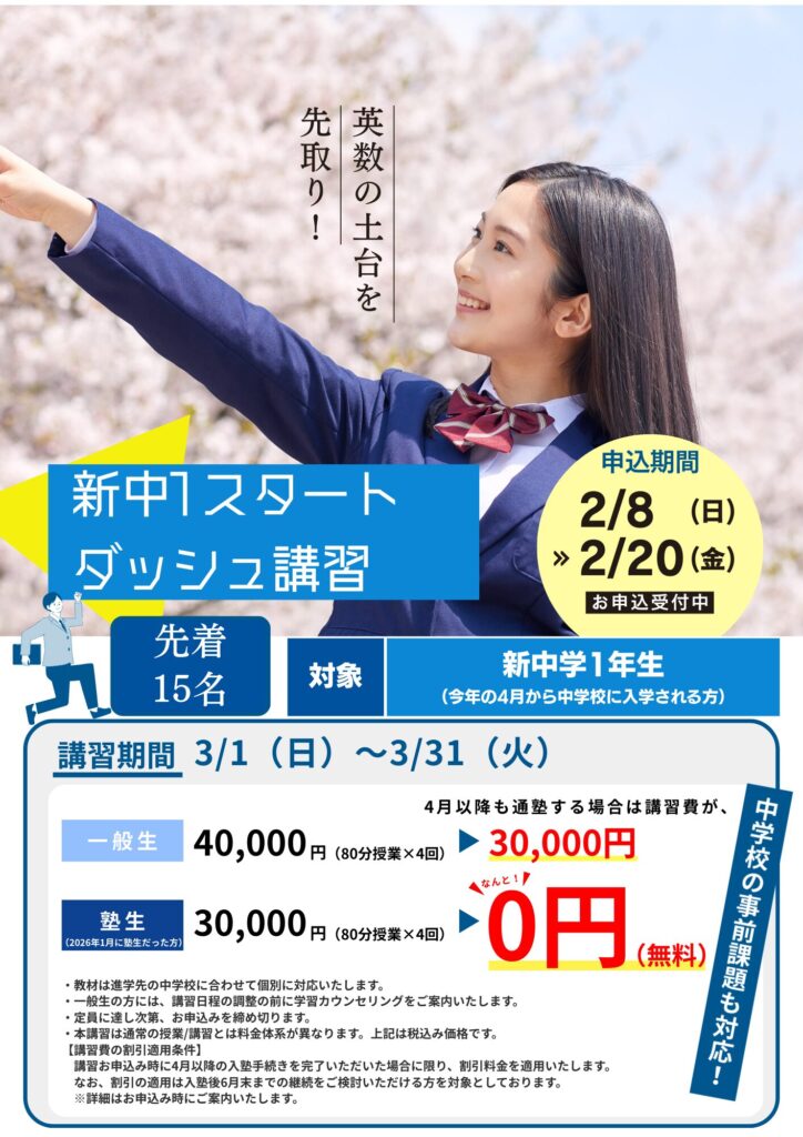 LEFYのスタートダッシュ講習で、入学前の1ヶ月で英数の土台を先取りし、中学校での最初の成功体験を目指しましょう!
